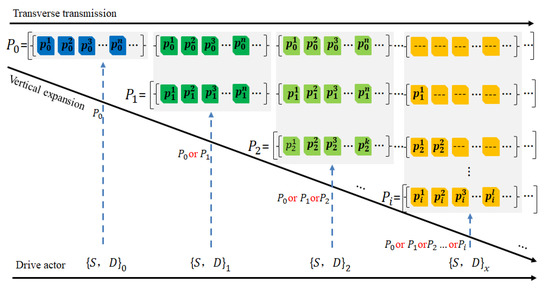 The complex failure characteristics are the main influencing factors for generalized growth decisions and remanufacturing scheme designs of RMP. The variety of failure forms and the difference in failure degree make the generalized growth mode of RMP more flexible. Therefore, under different failure characteristics, RMP should follow different growth patterns and evolve into recycled products with different properties, performances, and functions. As shown in Figure 1, in the generalized growth evolution mode of RMP, each node represents the product’s property, performance, function, and other attributes, where is a product set composed of a subset of product attribute sets. RMP have corresponding failure characteristics, that is, failure form S and failure degree D. RMP with certain failure characteristics can be remanufactured into different recycled products. For example, under the drive of failure characteristics , RMP can evolve into product with original attributes through remanufacturing; under the drive of failure characteristics , RMP can have two evolution modes: one way is to reconfigure the original product attributes and restore the RMP to original product ; another way is to change the product attributes and make RMP evolve into other types of recycled product with new product attributes. Similarly, the multi-granularity generalized growth evolution mode can be formed under complex failure characteristics.