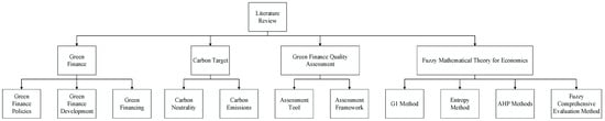 We focus on the quality assessment problem of green finance development in China in this study, aiming to build a comprehensive financial quality assessment system, propose a quality assessment method based on QFD and G1-entropy method, and argue the feasibility and scientific rationality of the research method with China as the actual analysis object. We drew the literature review into a schematic diagram, as shown in Figure 2.