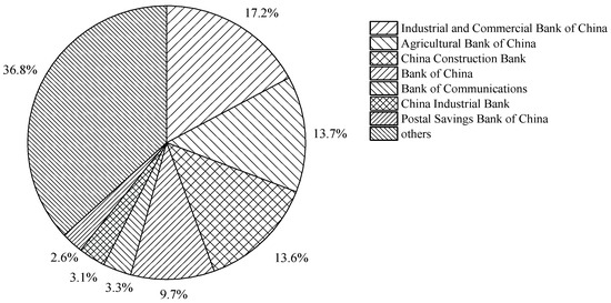 According to the data of the People’s Bank of China, as of FY2021, the total balance of green loans in domestic and foreign currencies in China was CNY 15.9 trillion, an increase of 33% year-on-year, ranking the first in the world in terms of stock size. This is an increase of CNY 8.8 trillion from the total balance of green loans in 2017, an increase of nearly 124%. The main directions of green credit investment are infrastructure, green transportation, environmental protection, water resources treatment, wind power projects, ecological environment, clean energy and other green industries. The 2021 loan balances for infrastructure green upgrade industry, clean energy industry and energy conservation and environmental protection industry were CNY 7.4, 4.21 and 1.94 trillion, up 28.3%, 31.7% and 46.7% year-on-year, respectively. Figure 4 below shows the percentage of green credit scale of major financial institutions in China in 2021.