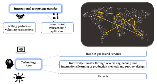 The mechanism by which a company in one country obtains and uses products manufactured in another is known as international TT, or diffusion, and operates on a technology flow basis (Figure 3) [26].