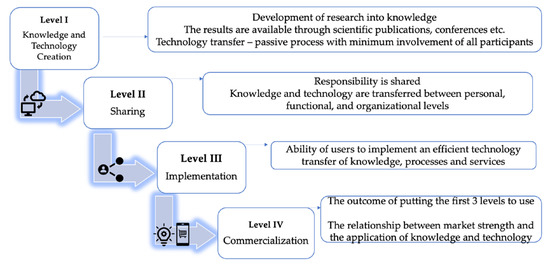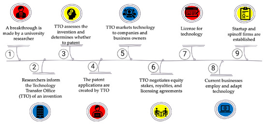 TT can be described as the process of technology transition between institutions. The transfer is considered a success when the organization that is on the receiving end (the transferee) can utilize and integrate the transferred technology in its products and processes. The transfer process may also imply sharing technical information, physical resources, and know-how [29,30,31].