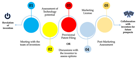 Patents codify specialized capabilities, and patent claims can accelerate the TT. Moreover, patents provide a demarcation of advanced technologies along with the promise of exclusivity, which companies are comfortable sharing while negotiating a licensing agreement. This might or might not be in the long-term interest of patent holders to transfer their innovations on varied terms, depending on business strategies. According to published literature, only viewing a patent is not sufficient for sustainable TT, or transfer that may result in implementation. These types of transfers should therefore involve the transfer of technical expertise, core competences, and other supplementary information in addition to the information that is disclosed in the patent and is accessible to the general public. As a result, business transactions involving the transfer of various sorts of information assets are expected to take place if patents genuinely encourage innovation by third parties [10,11].