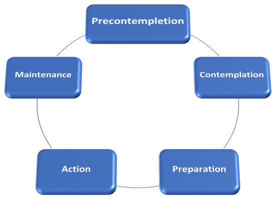 Another moderator variable may be a person’s current level of transformation. The stages of change model (SCM) [26] focuses on personalized messaging methods that reflect the distinct behavioral and psychological features at different stages of change. Although some academics have provided principles for creating such personalized messages [27,28,29], little research has looked into the effectiveness of different narrative techniques at different phases of change (Figure 1).