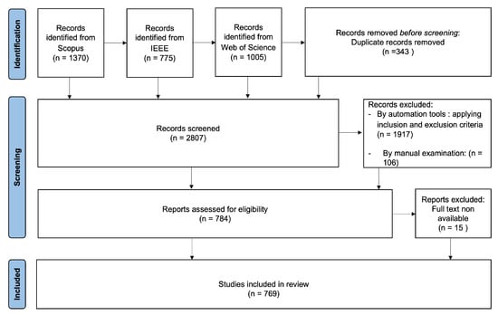 - Step 3: Included: At this step, we confirmed the final set of of 769 articles that we included in our study. It is worthwhile to mention that forward as well as backward snowballing were applied by two authors as recommended by Wohlin [], and we found no additional papers to be added to our final list of 769 relevant articles.