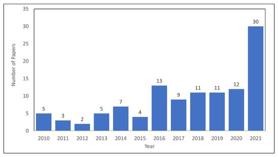 After collecting the papers, inductive statistics are carried out as below. The descriptive analysis of the 112 selected papers based on the year of publication shows increasing interest in the topic of LIRP for over a decade since 2010, as shown in Figure 3.