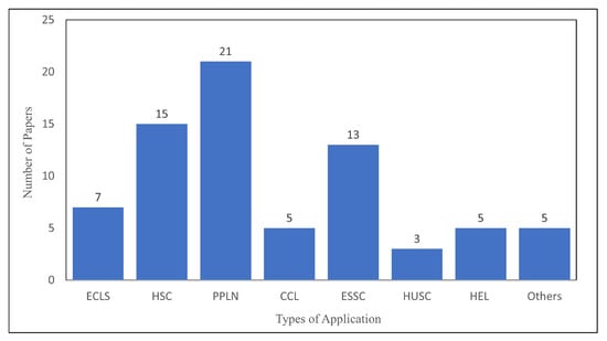 The second category is classified according to the characteristics of the demand data [35]. The demand data types studied in this systematic review are classified as deterministic, variable, stochastic, and fuzzy. The third category is based on the models and solutions to the problem, which is used in [33] to review the literature. The models include mixed integer programming (MIP), mixed integer linear programming (MILP), and mixed integer nonlinear programming (MINLP), where MIP includes both linear (MILP) and nonlinear (MINLP) models. In addition, the solutions include exact algorithm, heuristic and metaheuristic, mixed exact and heuristic and metaheuristic, and other approaches. The fourth and final category is based on application areas, which include E-commerce logistics system (ECLS), hazmat supply chain (HSC), perishable products logistics network (PPLN), cold-chain logistics network (CCLN), environmentally sustainable supply chain (ESSC), humanitarian supply chain (HUSC), healthcare logistics (HEL), and other logistics supply chain management.