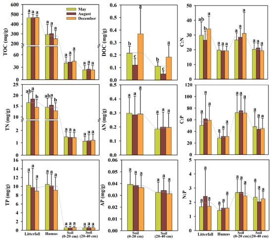 - Hu, L.; Ade, L.J.; Wu, X.W.; Zi, H.B.; Luo, X.P.; Wang, C.T. Changes in soil C:N:P stoichiometry and microbial structure along soil depth in two forest soils. Forests 2019, 10, 113. [Google Scholar] [CrossRef]
