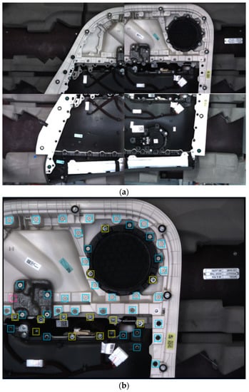 Example image of a (a) full door trim and (b) detected heat staking points.