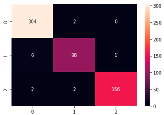 As the object detection results are significant, this study used the obtained heat staking points to further develop the ResNet classification model. Table 3 and Figure 5 report the summary statistics of the ResNet classification model. It should be noted that the F1-scores for non-defected, defected, and unknown classes were generally above 0.97. In the manufacturing industry, it is important to obtain a high F1-score, as recall and precision are both important factors [4]. This classification model’s high accuracy shows that ResNet well captured the different distribution of features between defected and non-defected heat staking points of automobile door trims. Furthermore, Table 4 reports performance metrics of the YOLO-ResNet model with the statistics for recall, false negative rate, precision, false negative rate, and F1-score of the model. It should be noted that the overall performance metrics is generally high and significant. Specifically, important metrics for manufacturing firms such as recall, and precision are approximately 98%. The overall results show that the generated YOLO-ResNet model is a significant model that may somewhat replace human labor inspection process.