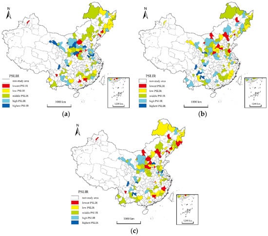 The pr and PSLIR of different grades in RBCs in China: (a) 2000–2010; (b) 2010–2020; (c) 2000–2020.