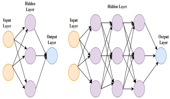 Artificial intelligence techniques such as artificial neural networks and deep neural networks are progressive methods for estimating Li-ion battery states. Deep neural network methods have been used for SOC estimation. In Figure 8, the architecture of a deep neural network is displayed. The fuzzy neural network, recurrent neural network (RNN), feedforward neural network (FNN), backpropagation neural network (BPNN), long short-term memory (LSTM), LSTM-RNN, convolutional neural network (CNN), radial basis function neural network (RBF-NN), Gaussian process regression (GPR), and extreme learning machine (ELM) methods have been successfully implemented for the state estimation of Li-ion batteries in various studies [85,86,87,88]. In [89], an optimized deep fully convolutional network (FCN) with learning rate optimization was proposed, which showed superiority compared with RNN, LSTM, and GRU. Since machine learning techniques perform data mapping without considering the physical mechanism, abrupt errors can occasionally result. In [90], the proposed physics-constrained neural network (NN) simultaneously reduced both the physical constraint loss and the data mapping loss. The multioutput convolved Gaussian process (MCGP) was proposed for multitasking and transfer learning to use the latent function decomposition method for forecasting the capacity of battery cells [91].