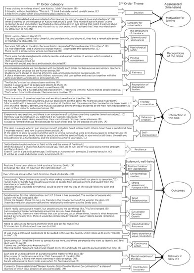Therefore, we focus on karate—one of the most popular martial arts among participants—and analyze how it is practiced as a service system that shapes wellbeing. We selected the qualitative Gioia research method [37,38,39] and the World Seido Karate Organization Seido-juku, which has been active globally for over 40 years. Seido-juku is an organization that has developed an independent philosophy and training system. It promotes the original, traditional budo, distinct from sport-oriented budo. This novel study analyzes the formation of wellbeing within a dojo from the viewpoint of budo as a service system.