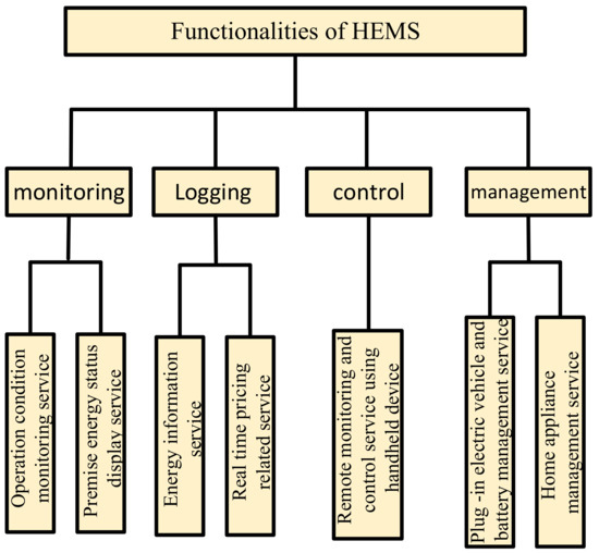 Home automation, or building management systems, has been created to improve the quality of human life based on a flexible environment with high security. Therefore, home automation is becoming widespread with the emergence of new smart devices [1,2]. A reliable and suitable home automation system changes the quality of human life at an unprecedented speed. With home automation, there is no need for users to perform daily operations. Therefore, this technology plays a significant role in saving time and energy [3]. Human–Machine Interface or HMI is a user interface that connects a human to a machine, system, or device. The term can technically be applied to any screen that allows a user to interact with a machine; however, HMI is usually used in the sense of an industrial process [4,5]. Today, HMI-related study has gone one step further and turned to the Internet, with the difference that it used to be used for communication but is now used for objects [6,7,8]. The IoT concept was invented by (PETER T. LEWIS in September 1985 [9,10]. In his lectures, he claimed that this technology covers a diverse range of technologies concerning sensing, networking, computing, information processing, and smart control technologies [11,12,13,14]. Thanks to the introduction of this technology, the implementation of home automation systems is becoming more popular among users; as well, this is because the IoT is the first step in making homes smart through wireless technologies [15]. Also, the application of IoT is not limited to a specific field, and a considerable contribution of small-scale applications to large-scale applications such as e-commerce [16], coal mining [17], smart farming [18], laboratory monitoring [19], public service [20], crowd sensing [21], and many other areas have been shown, and, in general, this technology enables the monitoring and operation of devices by different methodologies in any part of the world using only an Android application. As the demand for electricity increases, smart homes have become a research area to remotely control home appliances using the IoT [22,23,24,25]. Also, the significant benefits gained from wireless sensors and nanotechnology, among others, have fundamentally changed the way information technology and communication environments work. While IoT is still a growing and expanding platform, the current research in privacy and security shows that there needs to be more integration and unification of security and privacy, which may affect user adoption of the technology because of fear of personal data exposure [26]. The last two decades have experienced a steady rise in the production and deployment of sensing-and-connectivity-enabled electronic devices, replacing “regular” physical objects. The resulting IoT will soon become indispensable for many application domains [27]. The smart home is the proper integration of information technology and services using home networks in various home appliances for the convenience of the elderly and disabled people, and generally improving the quality of life [28,29,30]. Smart homes will allow users to perform actions such as adjusting the temperature of the house, turning lamps on and off, etc., without any physical connection [31]. Another critical issue noted in this article is the response to demand. Energy consumption has increased significantly, causing an increase in energy demand. Companies and industries spend thousands of dollars on energy and millions of dollars to find ways to conserve energy. Therefore, saving energy is one of the main goals of all technological innovations toward energy conservation. One of the ways through which technology helps in saving energy is the home automation system based on the IoT. Home energy management systems (HEMS) are optimal for providing energy management services to effectively manage energy production, storage, and consumption in smart homes. Therefore, users can optimize energy consumption by applying schedules based on their home appliances’ demand-response programs. Figure 1 shows the general architecture of a HEMS. HEMS should be more flexible in planning, managing, and controlling smart home appliances to save energy. In addition, active control services can be delivered to smart home users, such as providing accurate information about electricity consumption and energy pricing in HEMS-based smart homes. Also, users can plan and manage the service time of each smart home piece of equipment. Figure 2 shows the regular operation of a smart HEMS center with four main functions.