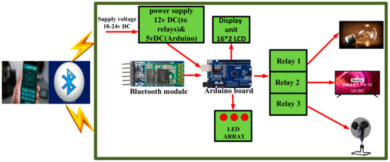 - Debnath, B.; Dey, R.; Roy, S. Smart Switching System Using Bluetooth Technology. In Proceedings of the 2019 Amity International Conference on Artificial Intelligence (AICAI), Dubai, United Arab Emirates, 4–6 February 2019; pp. 760–763. [Google Scholar]