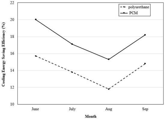 Cooling energy efficiency of the investigated PCM in walls and the roof during the summer.