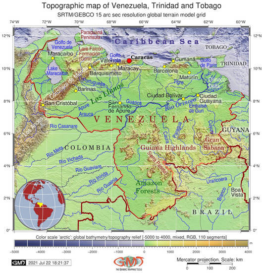 The GitHub repository contains the GMT scripts used for the mapping in this study: https://github.com/paulinelemenkova/Mapping_Venezuela_GMT_Scripts, accessed on 1 November 2022.
