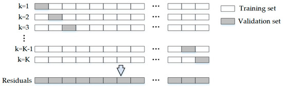 In order to accurately estimate the prediction error of the model to ensure that the interval prediction is appropriate and meaningful, we propose a residual estimation method referring to the K-fold cross validation method. The residual estimation process is shown in Figure 2 and the specific implementation process is as follows: