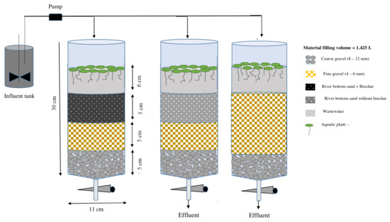 - Kasak, K.; Truu, J.; Ostonen, I.; Sarjas, J.; Oopkaup, K.; Paiste, P.; Kõiv-Vainik, M.; Mander, Ü.; Truu, M. Biochar enhances plant growth and nutrient removal in horizontal subsurface flow constructed wetlands. Sci. Total Environ. 2018, 639, 67–74. [Google Scholar] [CrossRef]