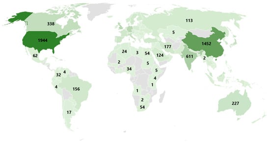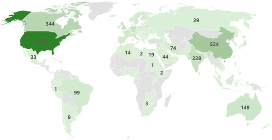 In the relevant literature, the researchers considered different combinations of many variables, which include GDP, gross national product (GNP), population, transport amount (vehicle-kilometer), freight transport amount (ton-kilometer), passenger transport amount (person-kilometer), number of registered vehicles, urbanization rate, and fuel price for developing transport energy models [12,13,14,15,16,17]. Multivariate, cointegration, and regression analysis can explain the influence of different indicators on energy demand. In Ref. [18], a few selected countries investigated the causal interrelationship between energy consumption and GDP. Ozturk and Acaravchi [19] studied the impact of energy use on GDP growth. Canyurt et al. [20] proposed an energy model using a genetic algorithm, selecting GDP, population, and import and export as inputs. Geem [14] proposed a neural network energy model for South Korea. Azadeh et al. [21] reported a fuzzy regression algorithm based Iranian energy model. Denoised electricity demand data allowed An et al. [22] to isolate the seasonal component and use it to train an ANN model. Uzlu et al. [23] used data on Turkey’s GDP, population, imports, and exports to inform a neural network approach to optimizing the country’s energy demand. Deshani et al. [24] took the first difference of the input series. They used a k-means clustering technique to select ANN model inputs for the prediction of the electricity demand. Table A1 in the Appendix A section summarizes various methodologies employed in literature to model energy demand in general and transportation energy demand. Figure 1 presents the article distribution of different countries worldwide based on the results received in Scopus with the keyword-transportation energy demand from the year 2000 to 2022. In contrast, Figure 2 presents the results obtained with the keywords transportation energy demand and greenhouse gas emissions for the same period. It was also evident from the search that the number of publications over the years are growing almost exponentially due to the importance of the topic.