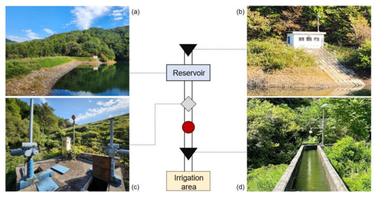 - Lee, J.; Noh, J.; Kang, M.; Shin, H. Evaluation of the irrigation water supply of agricultural reservoir based on measurement information from irrigation canal. J. Korean Soc. Agric. Eng. 2020, 62, 63–72. [Google Scholar] [CrossRef]