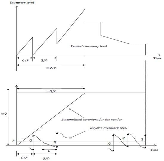 Hence, the vendor’s holding cost is . The joint expected total inventory cost is . It is mathematically expressed as: