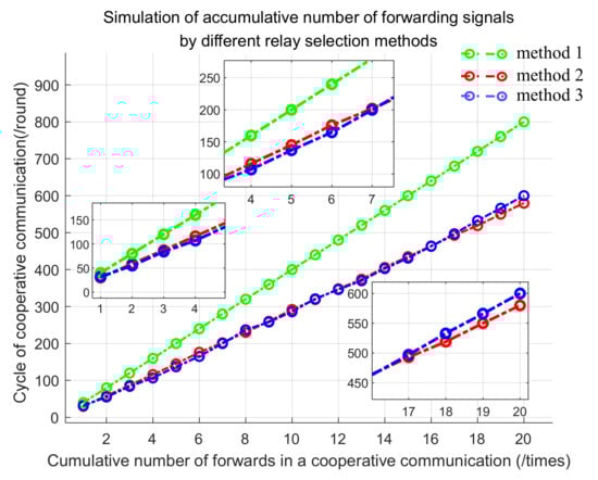 6]. To simplify the complexity of the computational process, the research used the signal-to-noise ratio of the link to construct the optimal function. The improved method reduced the energy consumption of the communication process. However, the method will become computationally intensive if the communication link is interrupted. In 2020, Ji B et al. improved the relay selection algorithm using the maximum–minimum principle [