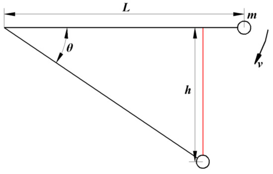 Considering the action of the articulated structure servo motor, the motor actively exerts a rotational torque on the rotary shaft, which generates a nonconservative force to conduct work on the system [39,40,41,42]. In this study, the Lagrange equation method was used to analyze the dynamics of the articulated structure. The rotation angle θ of the rotary shaft was selected as the generalized coordinate, and the mass of the ball head was equivalent to the point mass. Similar to Figure 4, the dynamic model of the ball head of the rotary shaft is established as shown in Figure 6.