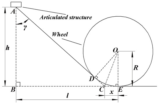 Here, is the horizontal distance between the lowest point of the articulated structure and the lowest point of the wheel, and is the height above ground at the lowest point of the articulated structure.
