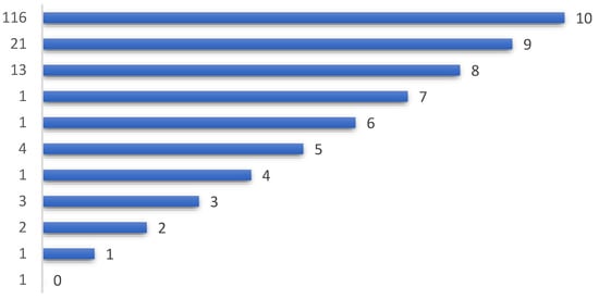 To the next question in the survey, most companies (77%) answered that Facebook is the most used social media tool, followed by Instagram (65%), Twitter (54%), and YouTube (48%). In addition, 39% of companies indicated that the new platform TikTok is extremely attractive for their company’s aims, and 36% of respondents mentioned that they use LinkedIn, followed by WhatsApp. In total, 10% of companies indicated that they use other platforms, without mentioning which platforms. For this question, respondents could choose several options. The next question “Do you think consumers’ perceptions of a particular product or service can be changed through social media promotions?” was designed in such a way that respondents can express their opinions using a scale from 1 to 10, regarding their perceptions of a particular product or service, and whether they can be changed through social media promotions. Thus, most respondents (116) answered positively to this question, with an answer of 10. Additionally, 13 respondents stated that consumer perceptions can change through promotion on social media, placing this on a scale of 9, and one respondent each opted for the other scalar numbers, in descending order, from 8 to 1. At the same time, two of the respondents mentioned that consumer perceptions cannot be changed by promotions on social media, placing this on a scale of 2. Figure 5 shows consumers’ views of social media promotion.