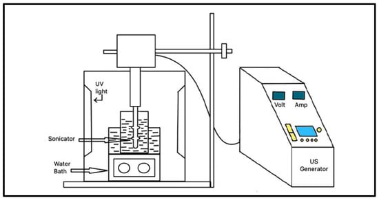 The catalysts were screened based on particle size, and the catalyst with optimal size was used for the desulfurization trials. All of the experiments were performed in a 250 mL quartz beaker with a height of 95 mm and diameter of 68 mm. For all of the desulfurization experiments, the US horn was operated at 100 W and a 70% duty cycle. The diameter of the US horn’s tip was 1 cm, and it was dipped in the reaction mixture to a depth of 0.5 cm. The reactor assembly (Figure 4) contained the quartz beaker, US horn, and a UV chamber equipped with two 8 W lamps (the generally available configuration locally) placed opposite to one another [28].