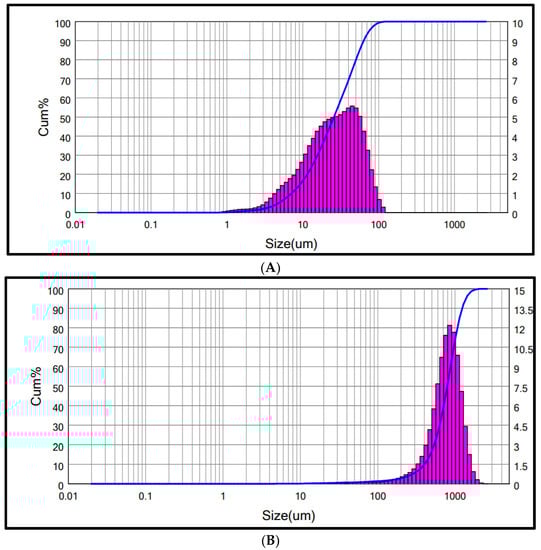 Particle size distribution of (A) the catalyst synthesized using the US-assisted approach, and (B) the conventionally synthesized catalyst.