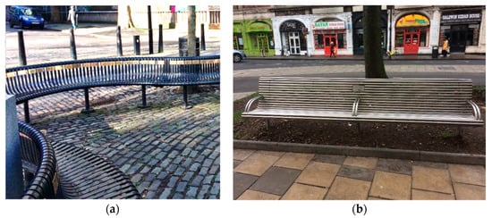 - Gupta, N.; Bhatti, V. Importance of Street Furniture in Urban Landscape. Int. J. Latest Trends Eng. Technol. (IJLTET) 2015, 5, 174–179. [Google Scholar]