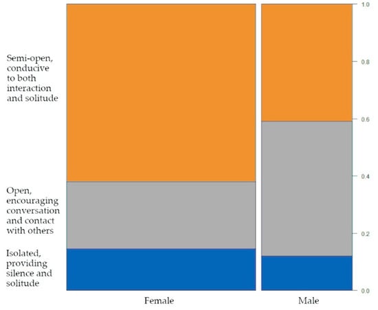 This confirms the importance of space design to facilitate contact and interaction between people and the preferences of future users of the space. Thus, users are, in a way, co-designers of furniture. The process of “co-design” ensures that the final product meets the needs of society, and further enriches the life of the community by promoting interaction between its members [17].