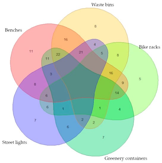 Urban furniture in some cases (e.g., benches, parklets) promotes increased contact between users. Due to it, urban furniture emphasises the rules of living together in order to sustain collective life, which is positive. However, the COVID-19 pandemic has enforced the greater awareness of users, especially in sunny days, because, according to Ardura et al. [39], contrary to expectations of higher virus survival in cold and humid days, the positive rate was significantly higher in sunny sampling days, reflecting a higher frequentation of public outdoors spaces.