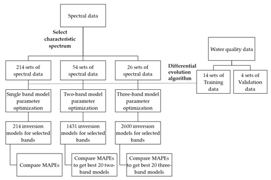 Moreover, the spectral bands are preliminarily screened when establishing the two-band and three-band models because of the computation cost. In the case where sufficient computational resource is available, we could consider to skip over the preliminary screening step and observe whether there is significant reduction of inversion error and change of independent variables in various models. Because the amount of data in this study is not large, only seven parameters were selected in various models. If more spectral and corresponding water quality data can be obtained in the future, more complex models can be used to try to uncover the information of water quality hidden in spectral data.