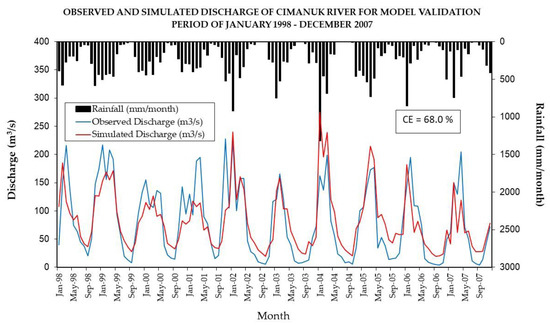 Observed and simulated discharge of Cimanuk River for model validation, data period of January 1998–December 2007.