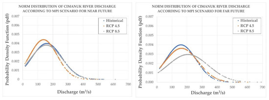 Norm distribution of Cimanuk River Discharge according to MPI-ESM-MR scenario for near and far future.