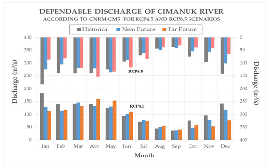 Dependable flow of Cimanuk Watershed according to CNRM-CM5 following RCP4.5 and RCP8.5 scenarios.