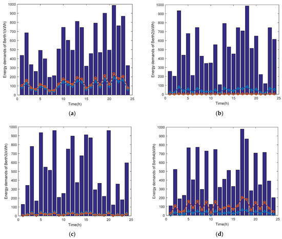 Energy power distribution results of time segment billing: (a) berth 1; (b) berth 2; (c) berth 3; (d) berth 4; and (e) berth 5.