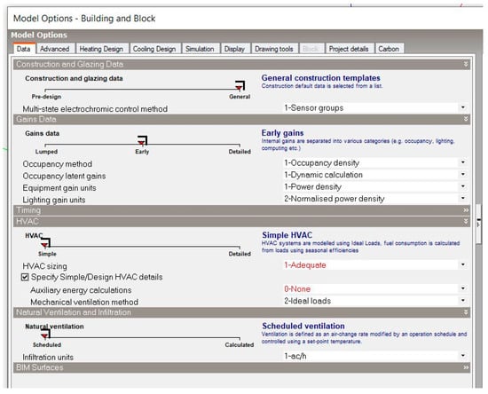 Some of model options defined for the DesignBuilder simulation.