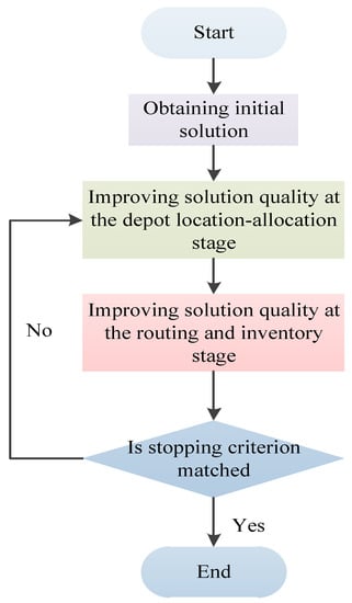 Next, the initial solution is optimized. The location of RDC is optimized first. Then, the initial solution of the itinerant route and inventory is improved separately and interactively until the search condition is satisfied. The final solution is the global near-optimal solution.