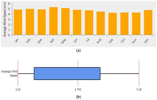 (a) Average wind speed (m/s) [48]. (b) Box plot of average wind speed [48].