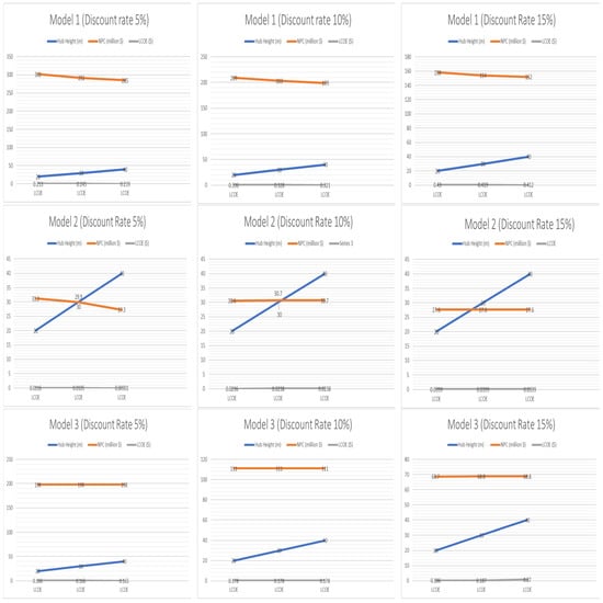 - The LCOEs for Model 1, Model 2, and Model 3 were respectively USD 0.401/kWh, USD 0.0347/kWh, and USD 0.185/kWh.