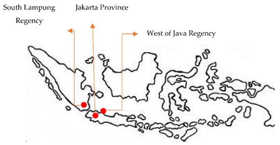 Map of Indonesia (Red Dots are Research Location Areas). Source: Taken by [51] (developed by author).