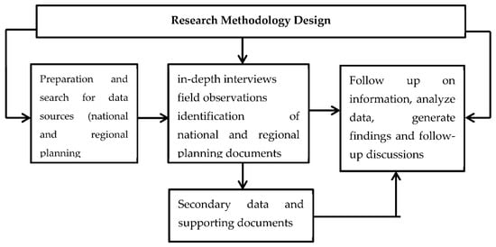 The types of data used in this research were primary data and secondary data. The primary data used in this research were obtained through in-depth interviews with parties involved in the composition of national and regional planning, field observations, and identification of national and regional planning documents, as described in Figure 2. The secondary data used were the planning documents from the MoA from the 2020–2024 period and the planning documents in the Regional Medium-Term Development Plan (RMTDP) and the strategic plans from the Regional Apparatus for Agricultural Affairs in Indramayu Regency and South Lampung Regency.