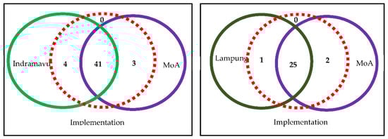 Based on the analysis results above, the level of consistency between the activities implemented in those two research locations is shown in the Venn diagram in Figure 4.