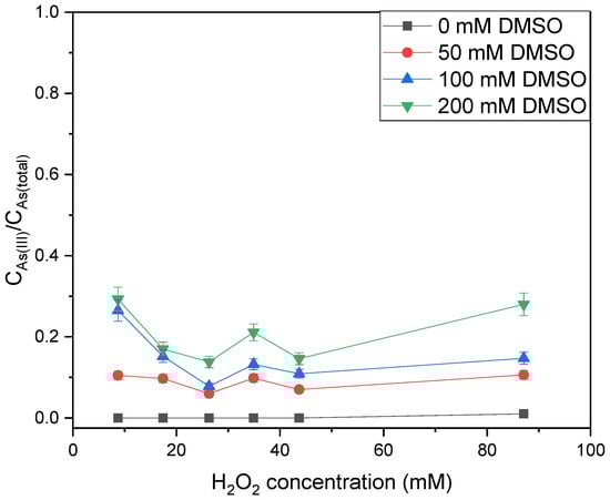 Effect of DMSO on residual As concentration. Initial concentration of As(III) was 100 μg/L. [Fe(III)] = 2 mg/L, pH = 7.