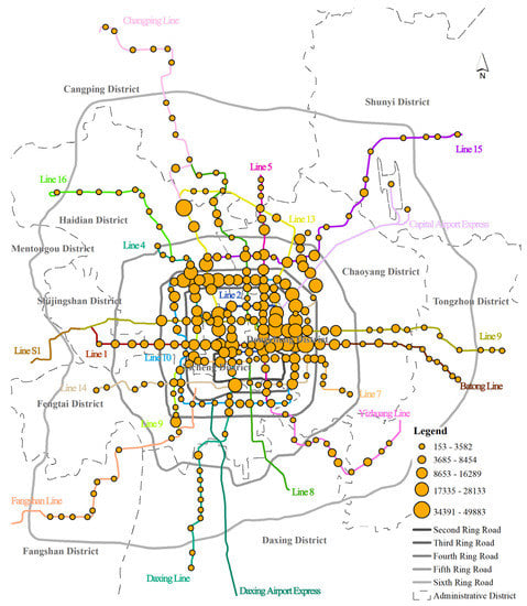 - Bai, T.; Cai, L.; Zhu, J.; Lin, X. Spatial Differentiation of Rail Transit and Urban Development Coordination: A Case Study of Beijing. J. Transp. Syst. Eng. Inf. Technol. 2020, 20, 14–19. [Google Scholar]