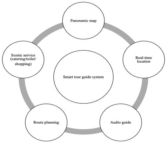 Smart tourism destinations (STDs) are constructed on cutting-edge technology infrastructure, providing technological solutions to boost tourism competitiveness through processes that improve the tourism experience [1]. The smart tour guide system (STGS), one of the up-to-date smart tourism technologies (STTs), is more and more widely used in STDs. STGS delivers intelligent self-service to tourists via a network control system comprised of physical equipment and a central database in the background, with the major display techniques being voice, video, photos, text, and so on [2,3,4]. Whilst tourists’ experiences, as well as tourist satisfaction have altered with the advent of new STTs. For example, tourists have historically relied on human resources, maps, brochures, or tour operators to learn about their location; however, STGS allows tourists to self-guide using smart devices [5]. Jeong and Shin underscored STTs had created memorable tourism experiences and tourist happiness [6,7], while Yoo pointed out different tourists will have different experiences and familiarity with STTs; such differences may lead to tourists’ dissatisfaction with STTs [8]. However, what concrete factors affect tourists’ experiences and satisfaction with STGS have not been totally explored so far. This study focuses on evaluating what factors influence tourists’ experiences with STGS.