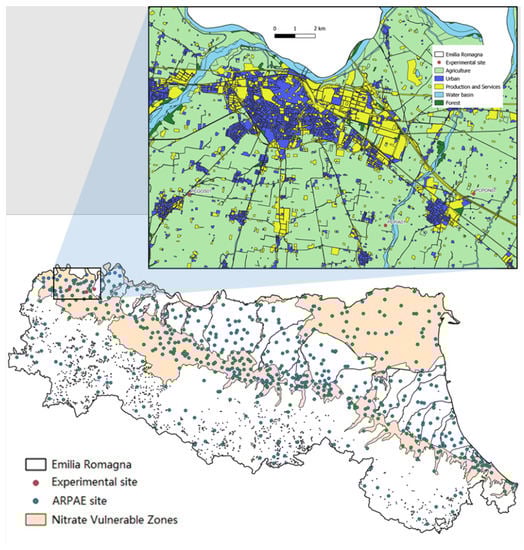 - ARPAE Emilia Romagna Groundwater Quality. Available online: https://www.arpae.it/it/temi-ambientali/acqua/dati-acque/acque-sotterranee (accessed on 12 July 2022).